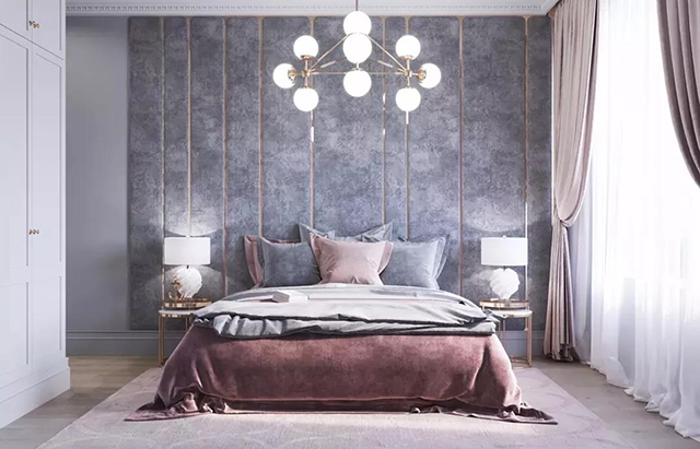同樣色調(diào)的臥室,加深了背景墻的顏色立馬多出幾分穩(wěn)重感。