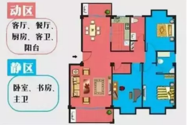 居住動線:主要是指臥室、書房、衛(wèi)生間,為主人的私密區(qū)域,最好不要跟來客動線和家務(wù)動線有交叉,影響私密性。