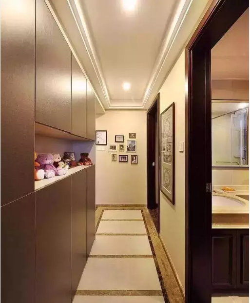 除了裝飾作用之外,走廊最重要是發(fā)揮實(shí)用性。其中,最常見的作用就是收納。無(wú)論是鞋子、衣物、書籍等,只有你想不到,沒有走廊收納做不到的。
