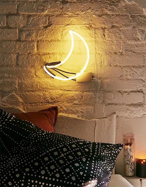 如果你對霓虹燈的印象還停留在酒吧和商業(yè)街,那端端可真是要氣到翻白眼了。造型多變的霓虹燈不僅能做臥室空間的氛圍照明,還能替代裝飾畫做床頭區(qū)的主要裝飾。