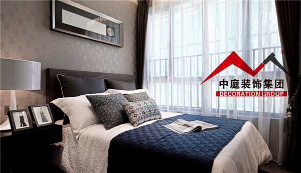 側臥床頭采用墻紙塑造墻面,經(jīng)濟又實惠。