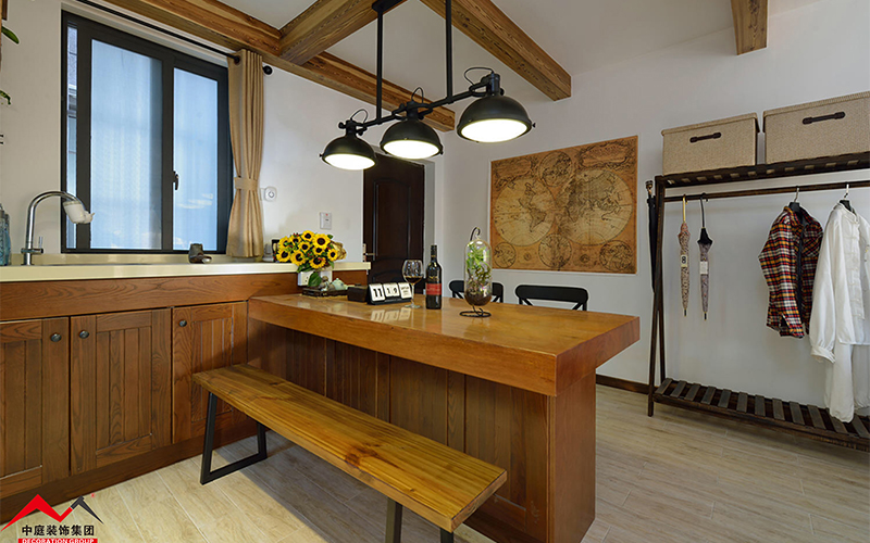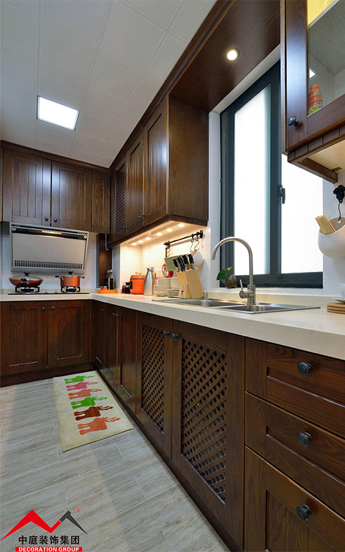 廚房繼續(xù)延續(xù)整個空間的輕美式風格,木制門板造型精致美觀典雅,讓人賞心悅目!在這樣美的空間為一家人準備餐點,難道不是一種享受嗎?