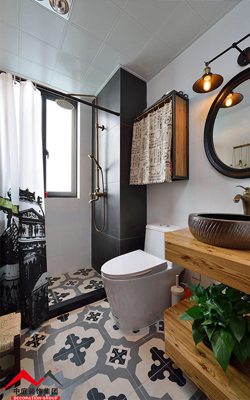 衛(wèi)生間寬闊凈朗,面盆別有一番特色,墻邊放置的小立柜既能收納也能放置裝飾畫,整個浴室藝術感滿滿。