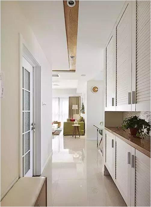家里的柜子不能少,玄關(guān)鞋柜分上下兩層很實用,底部留空可以用來放鞋子。