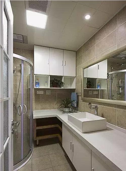 長長的衛(wèi)生間做下干濕分離較好,這樣空間保持干燥。
