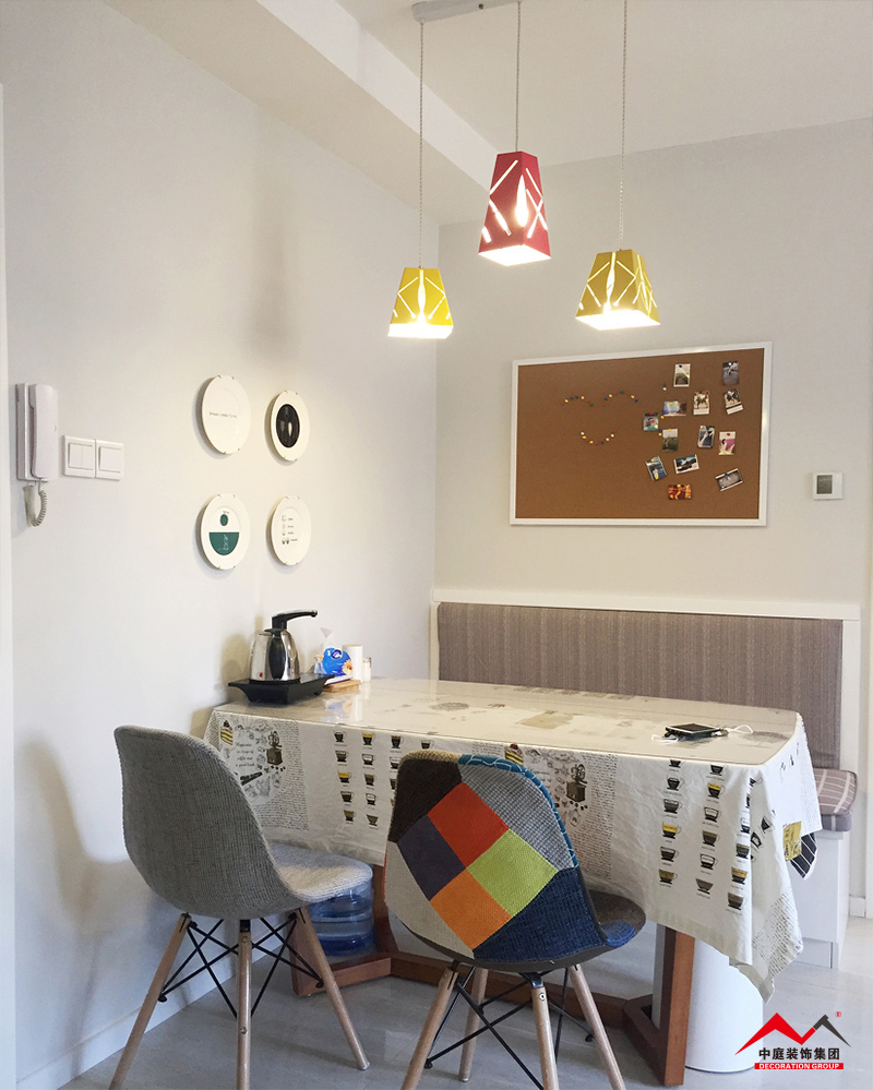 ▲燈具選擇,不是只有圓形最合適,根據(jù)你的餐桌來定。