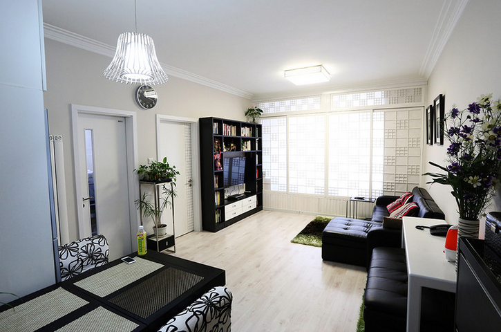 3、假如餐廳和客廳是有隔斷分開(kāi)的,可以在客廳使用木地板。