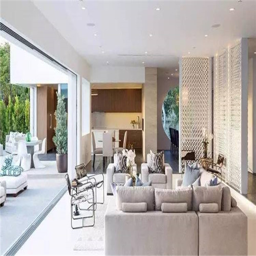 1、長(zhǎng)條形的客廳在與餐廳等隔斷時(shí),應(yīng)避免采用硬隔斷,因?yàn)楸緛?lái)空間就小,硬隔斷會(huì)使客廳看起來(lái)像個(gè)箱子一樣,給人壓抑感,而且也有可能影響采光。開(kāi)放式的客廳餐廳可能效果會(huì)更好一些,不管是休閑還是吃飯,都不會(huì)覺(jué)得擁擠。對(duì)于不喜歡開(kāi)放式的朋友來(lái)說(shuō),可以使用軟隔斷,比如用一個(gè)簾子或者鏤空的屏風(fēng)等,效果都會(huì)非常不錯(cuò)。但是隔斷物的顏色不易太過(guò)厚重,以簡(jiǎn)潔輕快為好。