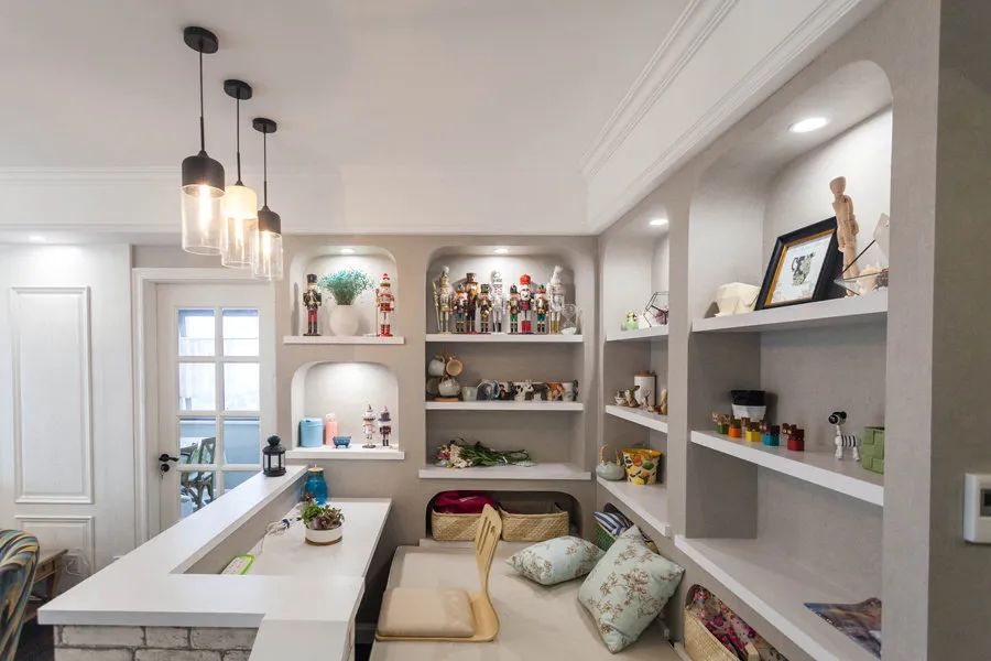 在廚房區(qū)域,用來放置一些調(diào)料或者餐具之類的物品,不僅一目了然,方便拿取,也有裝飾的效果,好看實(shí)用。