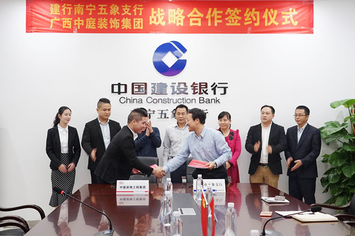 4月3日,中國建設銀行南寧五象支行與中庭裝飾集團,舉行“裝修貸款戰(zhàn)略作協(xié)議”簽約儀式。中國建設銀行五象支行郭行長、何副行長,中庭裝飾集團湯總、張總等一同參加了此次簽約儀式。