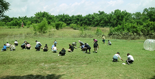 在草坪上捉雞和撿雞蛋的比賽,需要隊員之間相互合作,相互協(xié)調(diào),相互幫助,才可以快速完成任務,贏得比賽。同時也增強了各部門、同事與同事之間的密切溝通交流,有利于提高團隊的凝聚力。