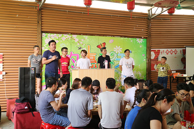 小憩時刻,與家人們共同享受美味佳肴。在品嘗美食時刻,主持人張經(jīng)理,邀請員工代表發(fā)言感想。