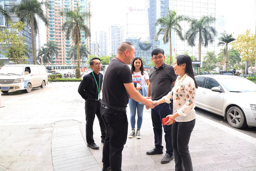 運營二部副總經(jīng)理劉合波在公司大門前迎接紡織工業(yè)學(xué)校陳黔校長一行人。
