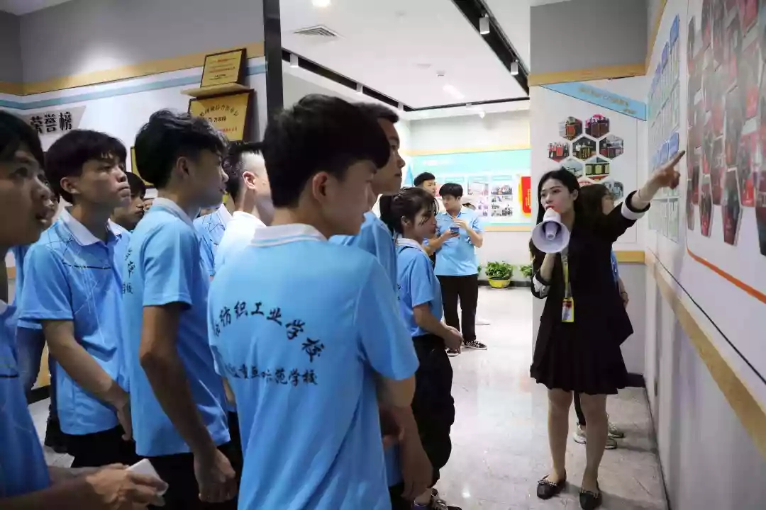 人資部經(jīng)理劉高才、主管黃丹丹帶領(lǐng)紡織工業(yè)學(xué)校學(xué)生參觀文化長廊,向?qū)W生們介紹公司企業(yè)文化理念、組織架構(gòu)、服務(wù)理念、企業(yè)榮譽、員工關(guān)懷等方面內(nèi)容,讓學(xué)生們對公司的企業(yè)文化有更深的了解。