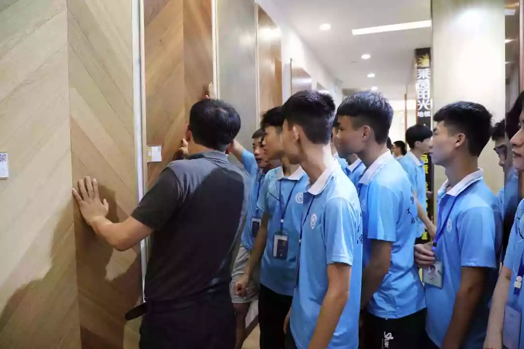 運營部設(shè)計經(jīng)理韋昌豪帶領(lǐng)學(xué)生參觀軟裝體驗館、工藝樣板間,講解裝修設(shè)計、裝修工藝、水電工程用料方面的知識,并解答學(xué)生們的疑問。