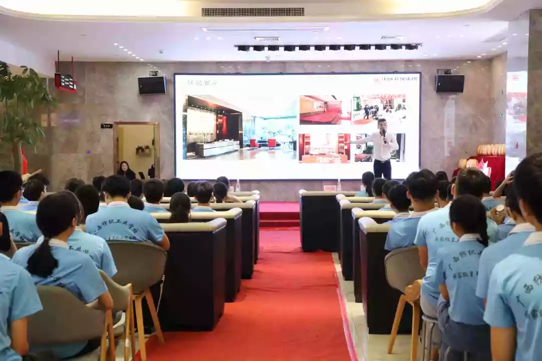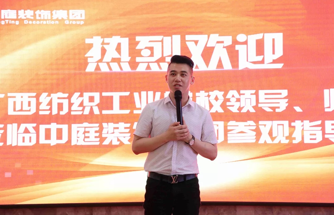 企業(yè)宣講交流會上,袁總向廣西紡織工業(yè)學(xué)校師生系統(tǒng)介紹了中庭裝飾集團的發(fā)展歷程、高端設(shè)計服務(wù)理念、未來的發(fā)展規(guī)劃以及各部門崗位職能、就業(yè)能力要求等,讓學(xué)生更加深入了解集團,同時也讓有志來集團發(fā)展的學(xué)生明確了未來的學(xué)習(xí)及自我能力提升方向。