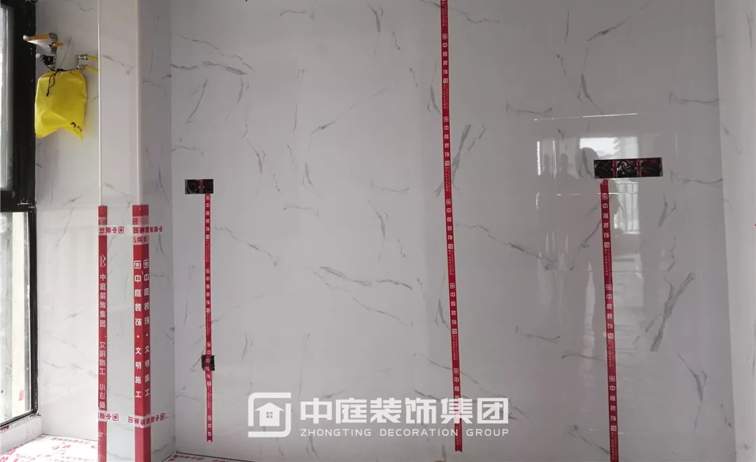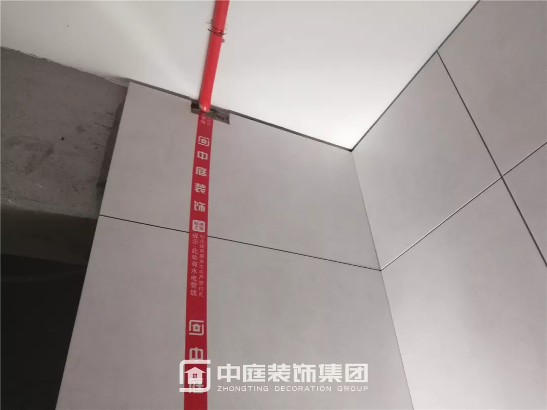 瓷磚鋪貼后做水電標(biāo)識,避免后期成品安裝打孔破壞水電線管;同時對瓷磚陽角進(jìn)行保護(hù),以免搬運(yùn)材料時磕碰。