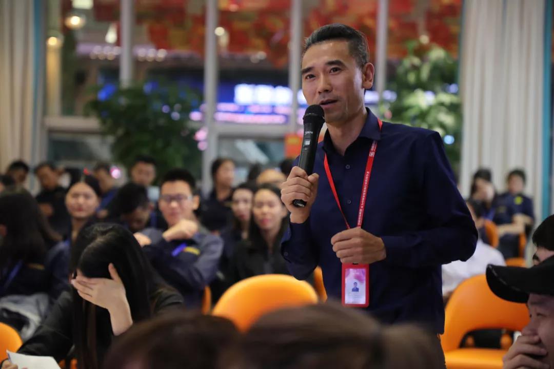 ▲素有“開心果”之稱的袁總,認(rèn)認(rèn)真真的審視題目,不放過任何為運(yùn)營(yíng)一部代表隊(duì)得分的機(jī)會(huì)。