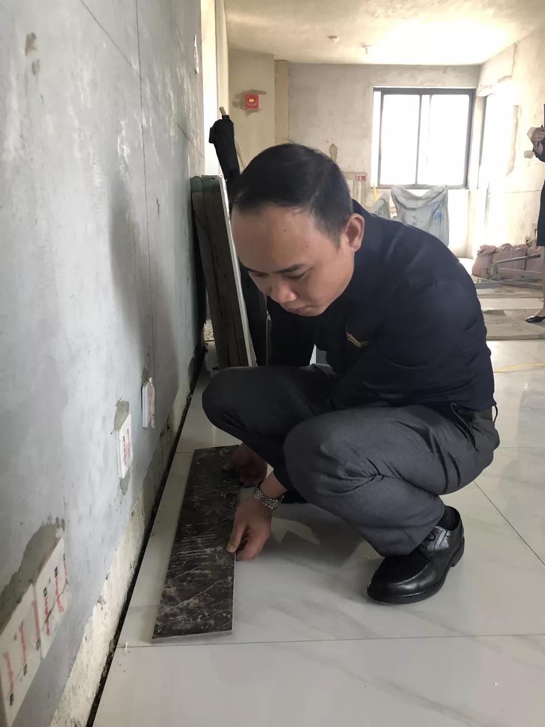 距離廣西教育廳住宅裝修集體開(kāi)工儀式已過(guò)去一月有余,部分工地施工相繼進(jìn)入鋪磚階段。作為教育廳住宅裝修工程總指揮,肩負(fù)著集團(tuán)的使命和業(yè)主朋友們的信任,集團(tuán)副總裁、工程質(zhì)量管理中心總經(jīng)理吳文戰(zhàn)時(shí)刻牽掛著教育廳工地進(jìn)展情況。10月30日,吳總帶領(lǐng)質(zhì)管中心工程管理團(tuán)隊(duì)赴工地現(xiàn)場(chǎng)對(duì)工程材料、質(zhì)量和服務(wù)三大項(xiàng)進(jìn)行突擊檢查!