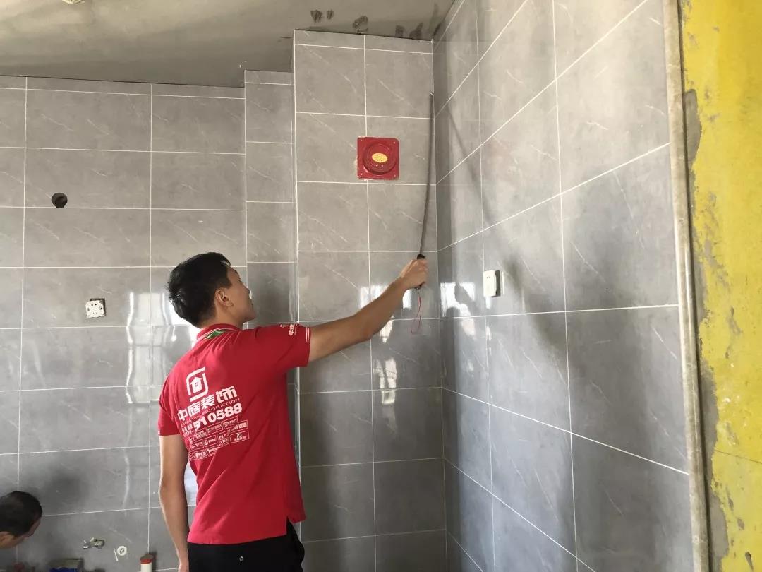 用空鼓錘敲擊瓷磚,檢查墻面瓷磚是否空鼓