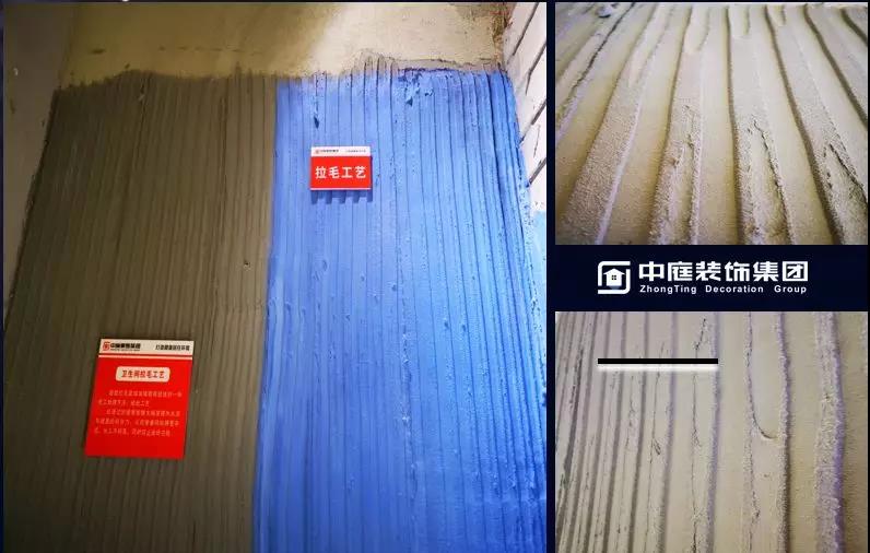 拉毛工藝:墻面拉毛是增加墻面粗糙度的一種施工處理方法,經(jīng)此工藝處理過(guò)的墻面能夠大幅度提升水泥與墻面的附著力,從而使墻磚貼得更牢固,長(zhǎng)久不脫落,同時(shí)防止瓷磚空鼓。