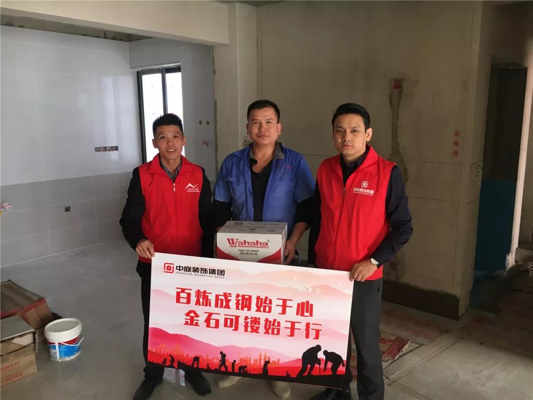 丁胡總裁與業(yè)主、施工師傅交流膩?zhàn)邮┕で闆r;交流過(guò)程中明顯可以看出師傅和業(yè)主朋友的關(guān)系非常融洽,巡檢現(xiàn)場(chǎng)其樂(lè)融融。