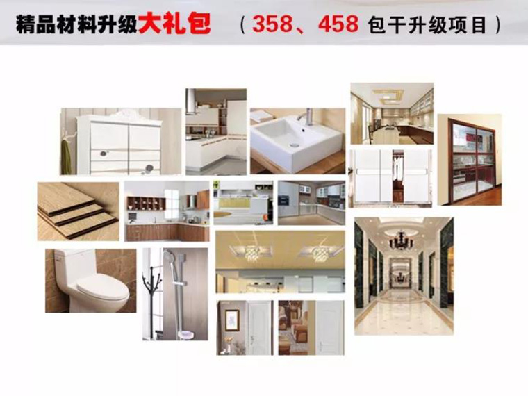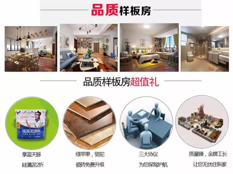 全房精品主材,墻漆,吊頂、瓷磚、木地板、衛(wèi)浴、櫥柜、室內門,等免費升級,您可以選購到自己心儀的家裝建材,還能享受超級折上折哦!