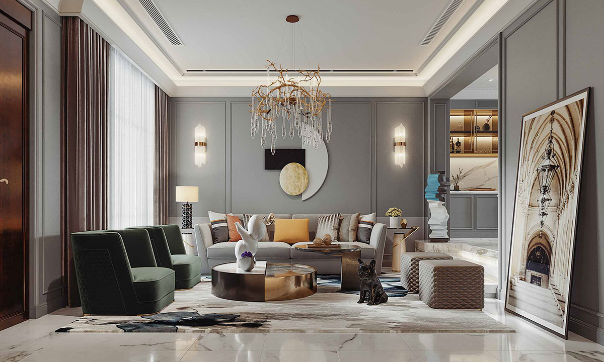 瀏覽量:347本案例為榮和山水美地法式輕奢案例,設(shè)計師采用了大量水晶燈、玻璃、金屬等元素,整體設(shè)計摒棄傳統(tǒng)法式的繁復(fù)造型、奢華的裝飾以及甜膩的色彩,以低調(diào)的設(shè)計形式,淡雅的色彩,營造出法式輕奢感,突出對稱的布局,幾何線條的設(shè)計,淺色的色彩裝飾,創(chuàng)造法式輕奢主義的格調(diào)。體現(xiàn)居住者對高品質(zhì)生活的追求。