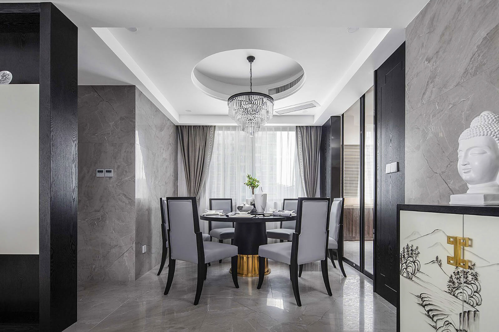 瀏覽量:372本案為142㎡新中式風格案例,以東方的"留白"美學(xué)觀念控制的風骨,顯出大家風范。設(shè)計師采用合理的布局,格調(diào)高雅,造型簡樸優(yōu)美,色彩濃重而成熟。謹以此作,表達對清雅含蓄、端莊豐華的新中式精神境界的追求。