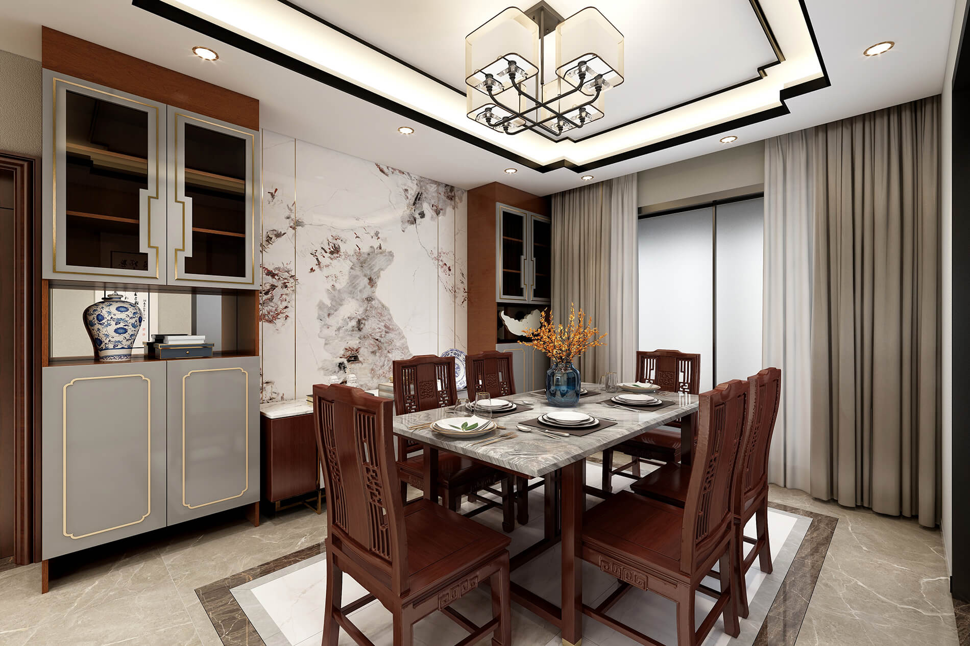綠地中央廣場141m²新中式風(fēng)格案例