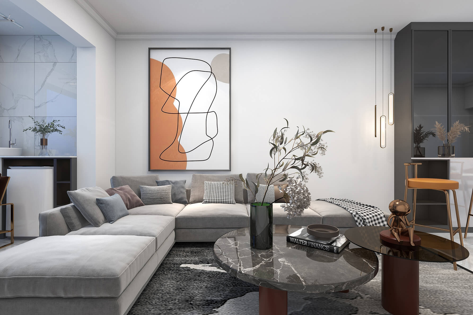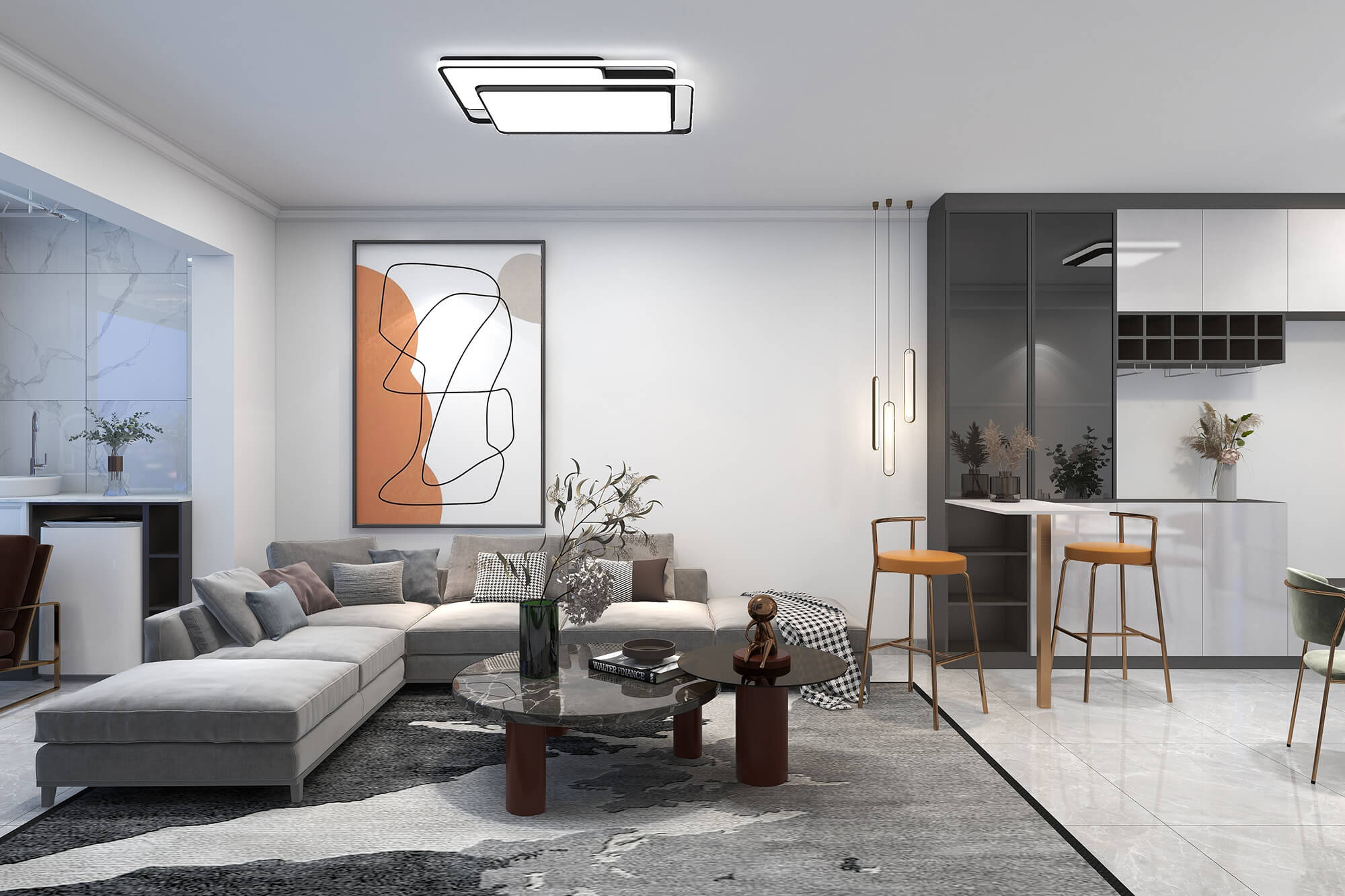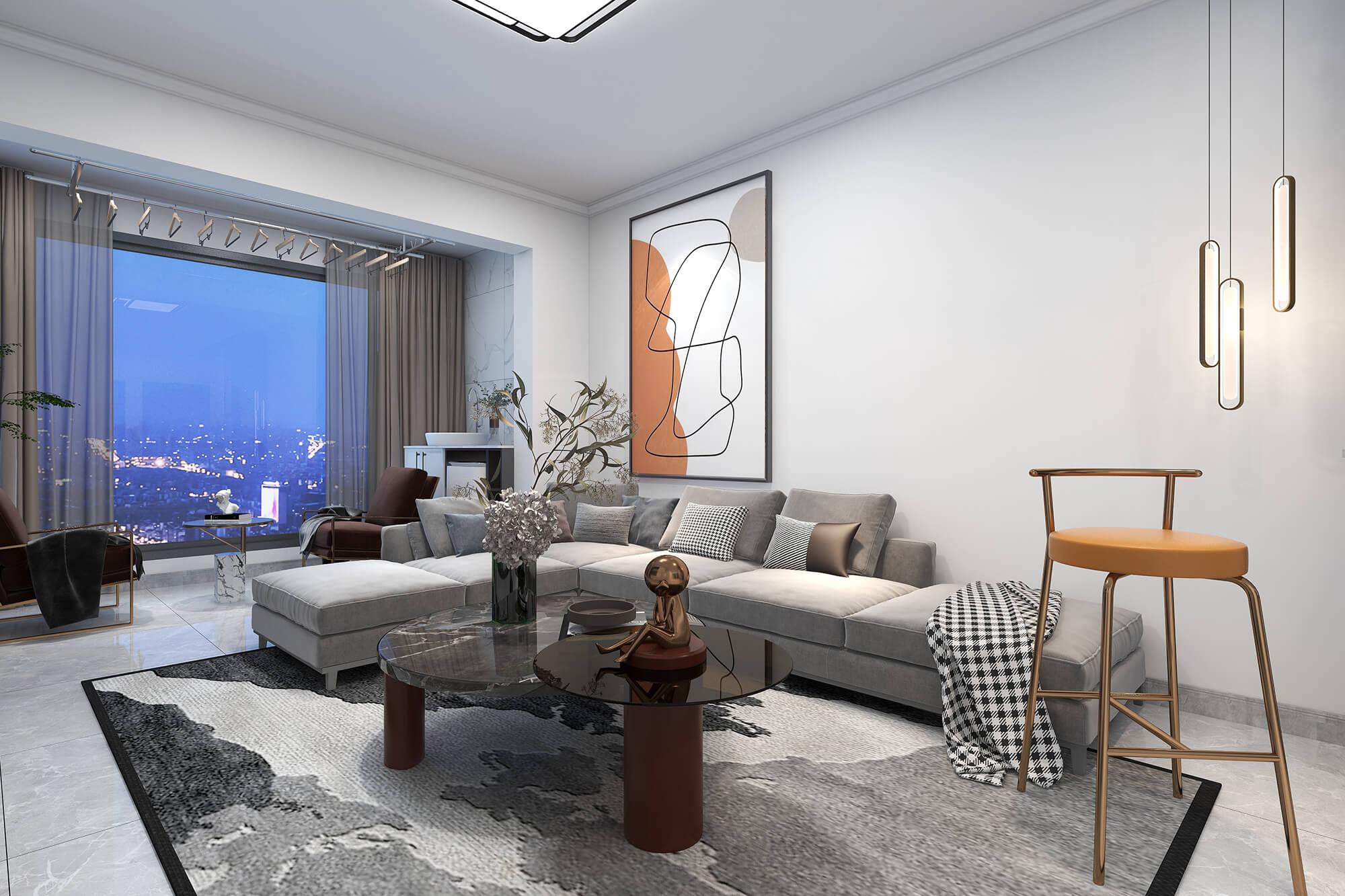 本案總面積109㎡,以現(xiàn)代簡約為基底,舒適自然為核心,融合別出心裁的考量,打造精睿格調(diào)、人文藝術(shù)的品質(zhì)居所。為此設(shè)計(jì)師在用色選材上大花心思,以溫馨典雅的淺色色、知性優(yōu)雅的咖啡色,璀璨溫暖的橘棕色形成這座大宅獨(dú)特的氣質(zhì)色彩,讓人感受到生活的愜意與放松。