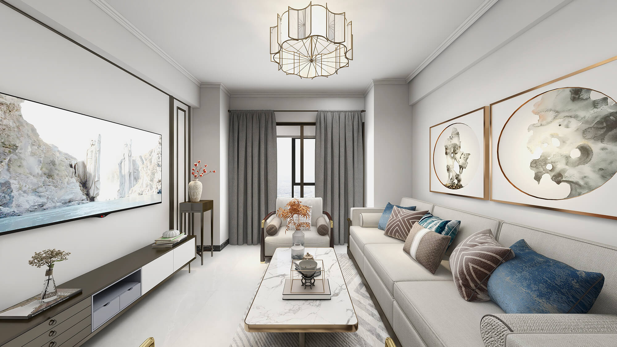 瀏覽量:574本案戶型為:3房2廳2衛(wèi),總面積72㎡。本案風(fēng)格為新中式,在空間中以淺灰色為主色調(diào),將中式元素以生活的面目表達出來。在造型、擺件等上面采用一些中式手法,為空間增添高雅秀逸的意境美,使得整體空間賞心悅目,并充滿韻味。