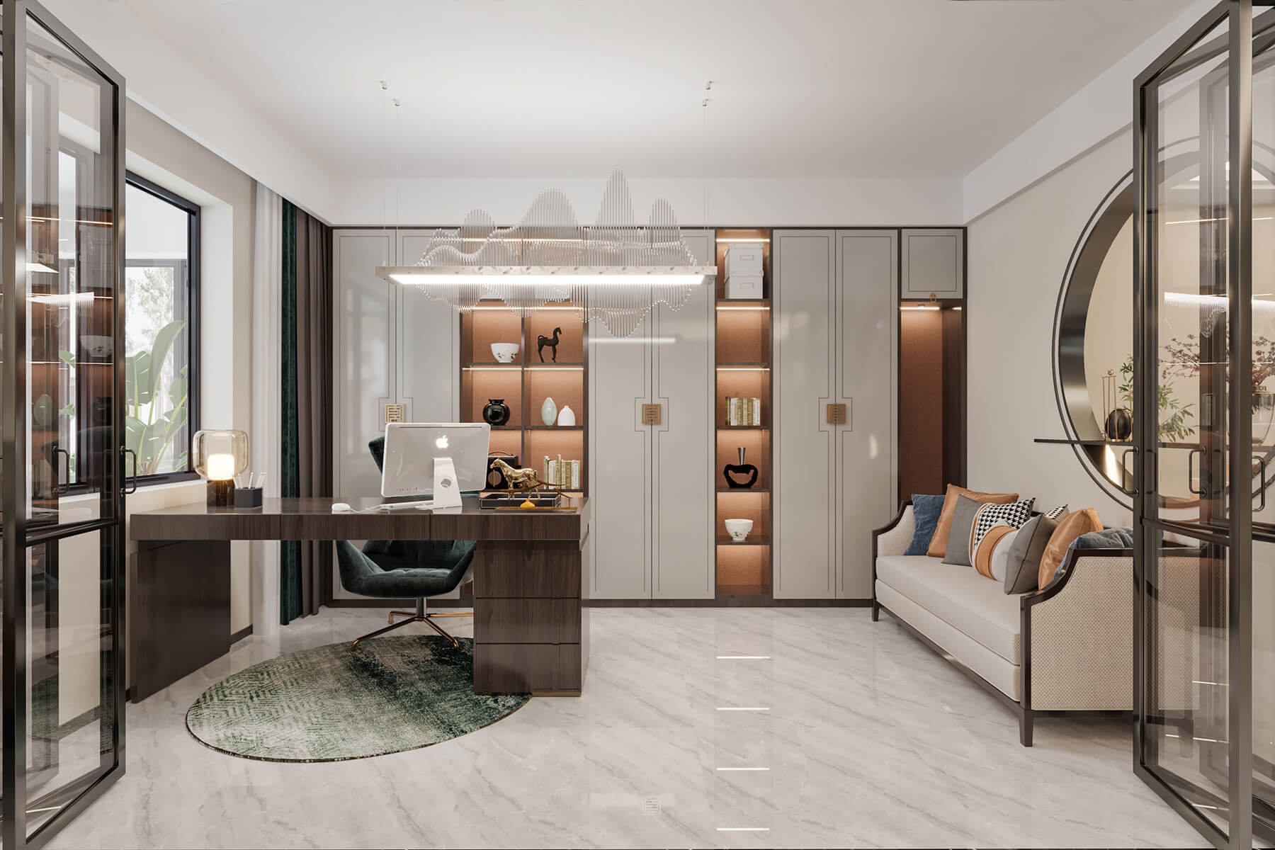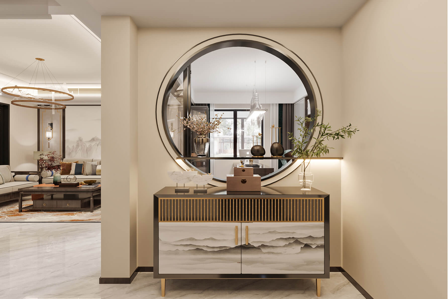 瀏覽量:810本案總面積136㎡,整體采用新中式風(fēng)格設(shè)計。沿襲傳統(tǒng)江南風(fēng)情,蘊藏著悠然詩意的傳統(tǒng)文化在空間中娓娓道來。東方的風(fēng)韻與藝術(shù)的雅致,以簡練的手筆,營建清寧澄凈的氣質(zhì)與芳華。