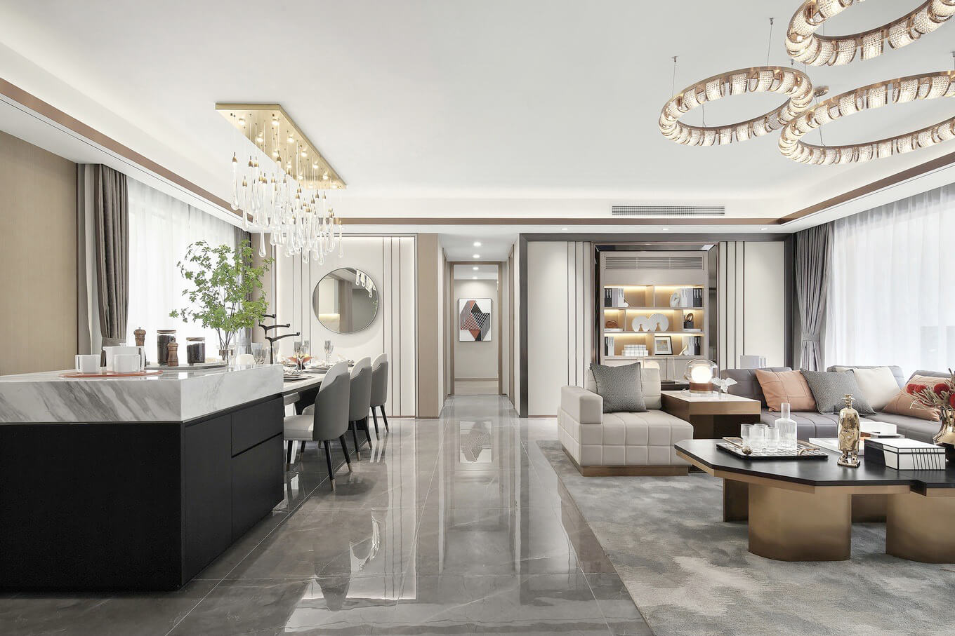 瀏覽量:656本案總面積為121㎡。設(shè)計師以簡潔而高級的設(shè)計手法,塑造閑適的生活意境。最大保留自然光線,給予空間輕盈通透的品質(zhì)感。如此安靜的氛圍中,每天的日常都是如此浪漫。