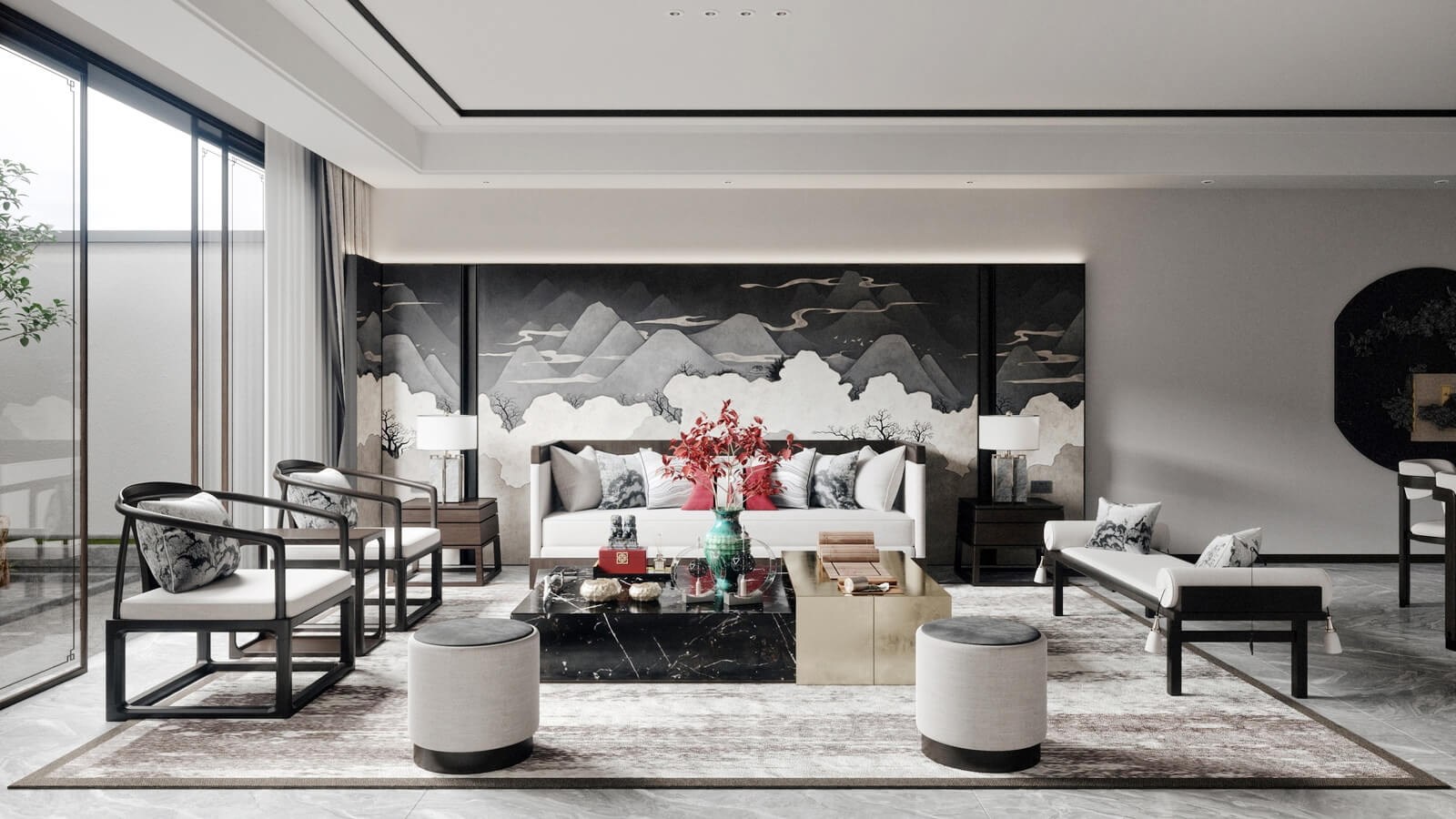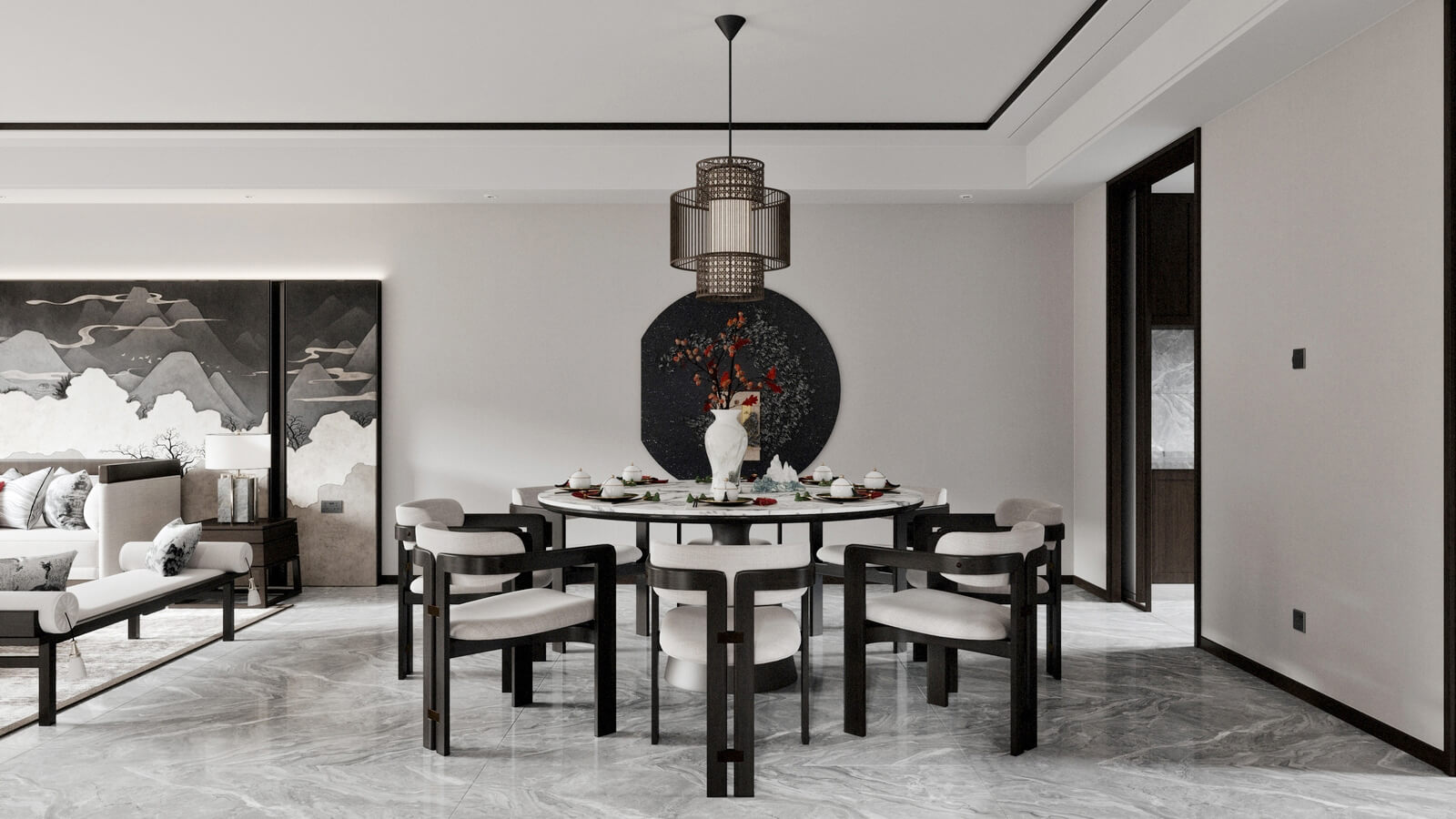 瀏覽量:1147設(shè)計(jì)師打破了人們對(duì)傳統(tǒng)中式風(fēng)格的固有觀念,加入了許多現(xiàn)代化的設(shè)計(jì)元素。其中,中國(guó)風(fēng)味一點(diǎn)兒也沒(méi)少。山水畫,瓷器,深色桌椅,這些富含古典韻味的裝飾,完美地與現(xiàn)代化的空間融為一體,體現(xiàn)出靜謐的美感。