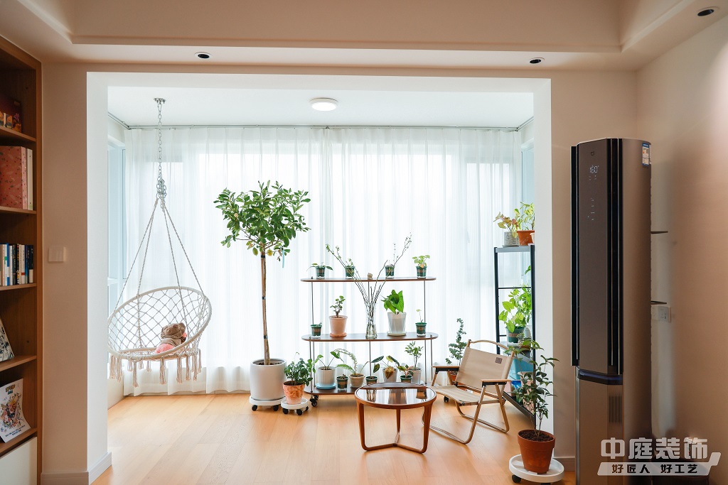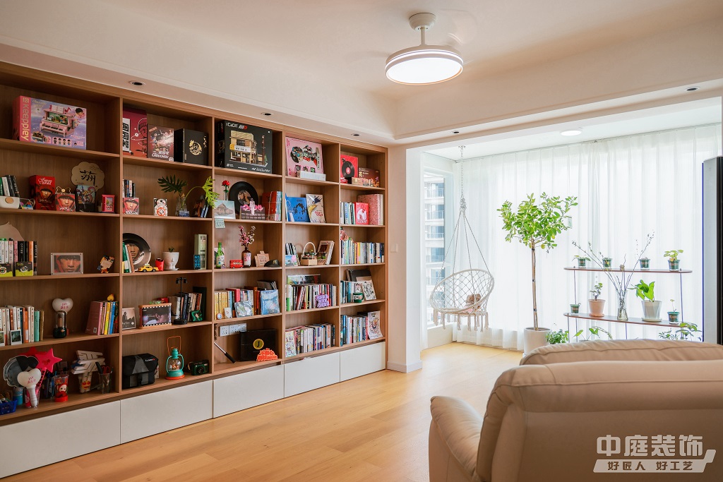 瀏覽量:896仿佛步入了一個自然與簡約交織的溫馨空間。淺色調(diào)的木質(zhì)地板營造出一種質(zhì)樸而不失高雅的氛圍??蛷d中央,去客廳化的設計,一排原木色到頂書架擺滿精心挑選的物件和書籍,一進門就能感受家的溫暖。