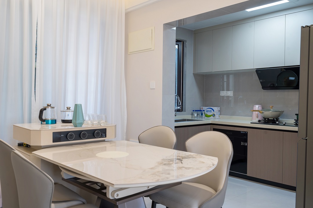 整個(gè)空間從動線到顏色、材料,幾乎無一例外都在對主人的性格及愛好進(jìn)行投射?,F(xiàn)代風(fēng)格以簡潔的線條和明亮的色彩,營造出一種輕松愉悅的居家氛圍。