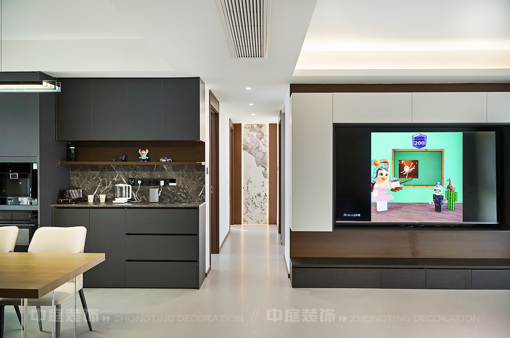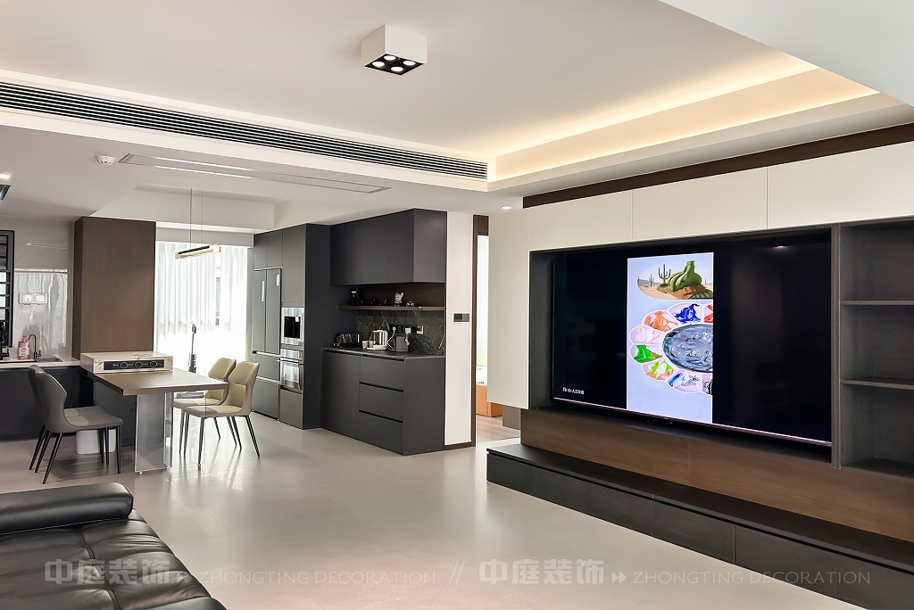瀏覽量:84客廳以現(xiàn)代黑白灰極簡風(fēng)格為核心,大面積白紗簾引入自然光線,黑色皮質(zhì)沙發(fā)質(zhì)感高級。開放式布局,深灰櫥柜與木質(zhì)餐桌形成材質(zhì)對比,線性吊燈提升精致感,功能與美學(xué)兼具,營造現(xiàn)代簡約的烹飪用餐氛圍。輕柔窗簾與柔和燈光,打造靜謐休息空間。精致的材質(zhì)選擇與合理的功能規(guī)劃,詮釋了“少即是多”的現(xiàn)代簡約居住美學(xué)。
