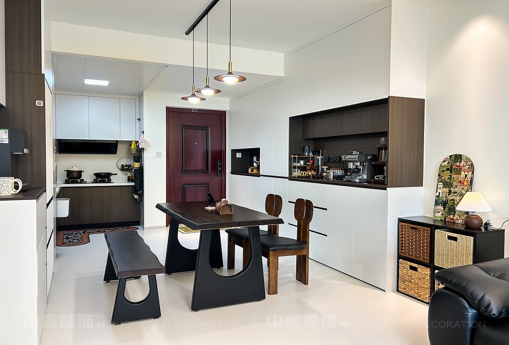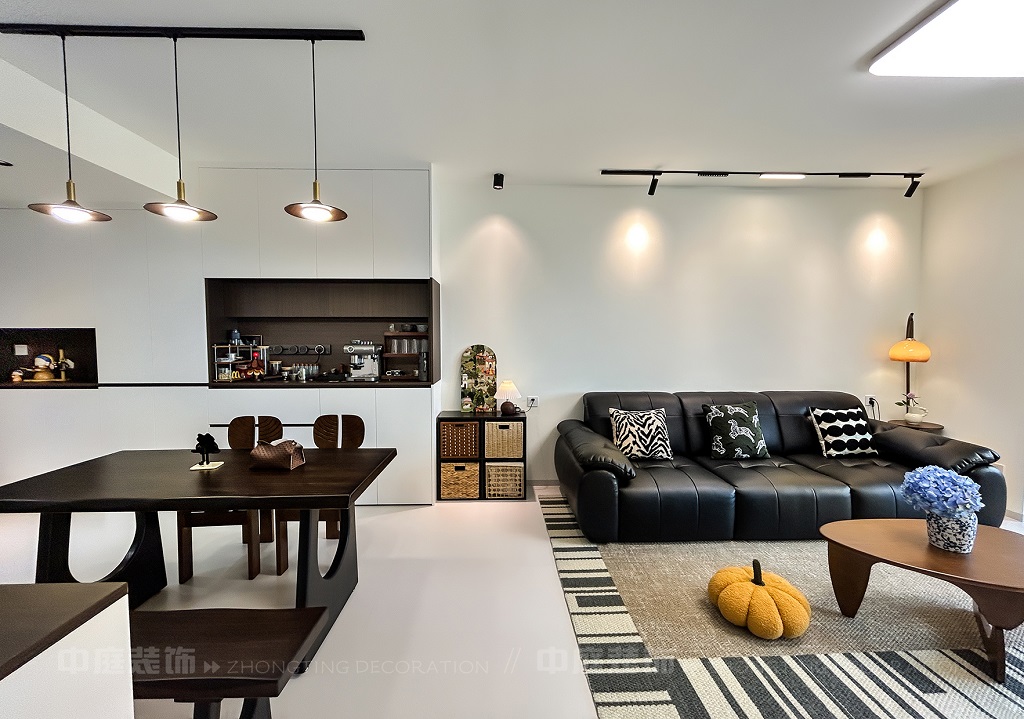 這套房從普通居所蛻變?yōu)槎际携熡鷪觯筒蛷d以黑白棕營造高級松弛感,咖啡角、藝術畫、游戲區(qū)藏著主人對生活的熱愛,餐廚煙火與雅致共生,每處角落的陳設都是靈魂的妥帖安放,是裝滿故事與溫度的私屬堡壘。