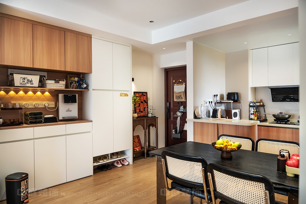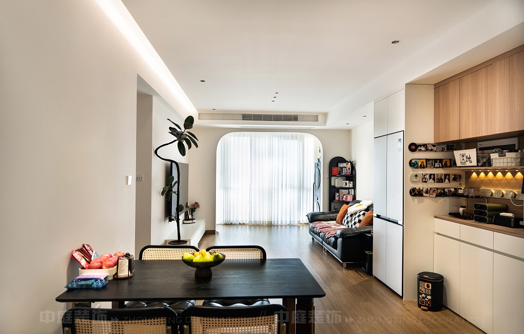 瀏覽量:143每一處細(xì)節(jié),都是他們對(duì)“把日子過(guò)成詩(shī),讓家裝滿故事”的詮釋。以原木的溫潤(rùn)、白調(diào)的清爽為基底,在玄關(guān)處嵌入復(fù)古邊幾,擺上藝術(shù)感的裝飾畫(huà),仿佛時(shí)光在此打了個(gè)溫柔的結(jié);餐廚區(qū)的咖啡角裝滿對(duì)生活的小確幸,與開(kāi)放式廚房的煙火氣交融,是晨起的咖啡香與深夜的飯菜香的浪漫邂逅;客廳里,黑色皮沙發(fā)搭配復(fù)古風(fēng)抱枕,一旁的藝術(shù)綠植蜿蜒生長(zhǎng),就像主人對(duì)生活的熱愛(ài)肆意又熱烈。
