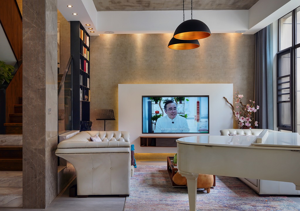 瀏覽量:121這套房子裝修風(fēng)格是工業(yè)風(fēng)與輕奢風(fēng)的巧妙融合,日常又不失格調(diào)。水泥質(zhì)感的吊頂保留了工業(yè)風(fēng)的粗獷感,搭配暖黃色的吊燈,瞬間讓空間溫馨起來。墻面采用質(zhì)感石材與簡約板材結(jié)合,電視背景墻的設(shè)計(jì)簡潔大氣。家具選擇了皮質(zhì)的輕奢款沙發(fā),觸感舒適且顯質(zhì)感。樓梯區(qū)域很有特色,木質(zhì)臺(tái)階搭配金屬扶手,旁邊的綠植和書架為空間增添了生機(jī)與文藝氣息。還有那架白色鋼琴,讓整個(gè)家在日常中多了一份藝術(shù)氛圍,無論是休閑還是待客,都能感受到這份融合了工業(yè)硬朗與輕奢精致的舒適日常。