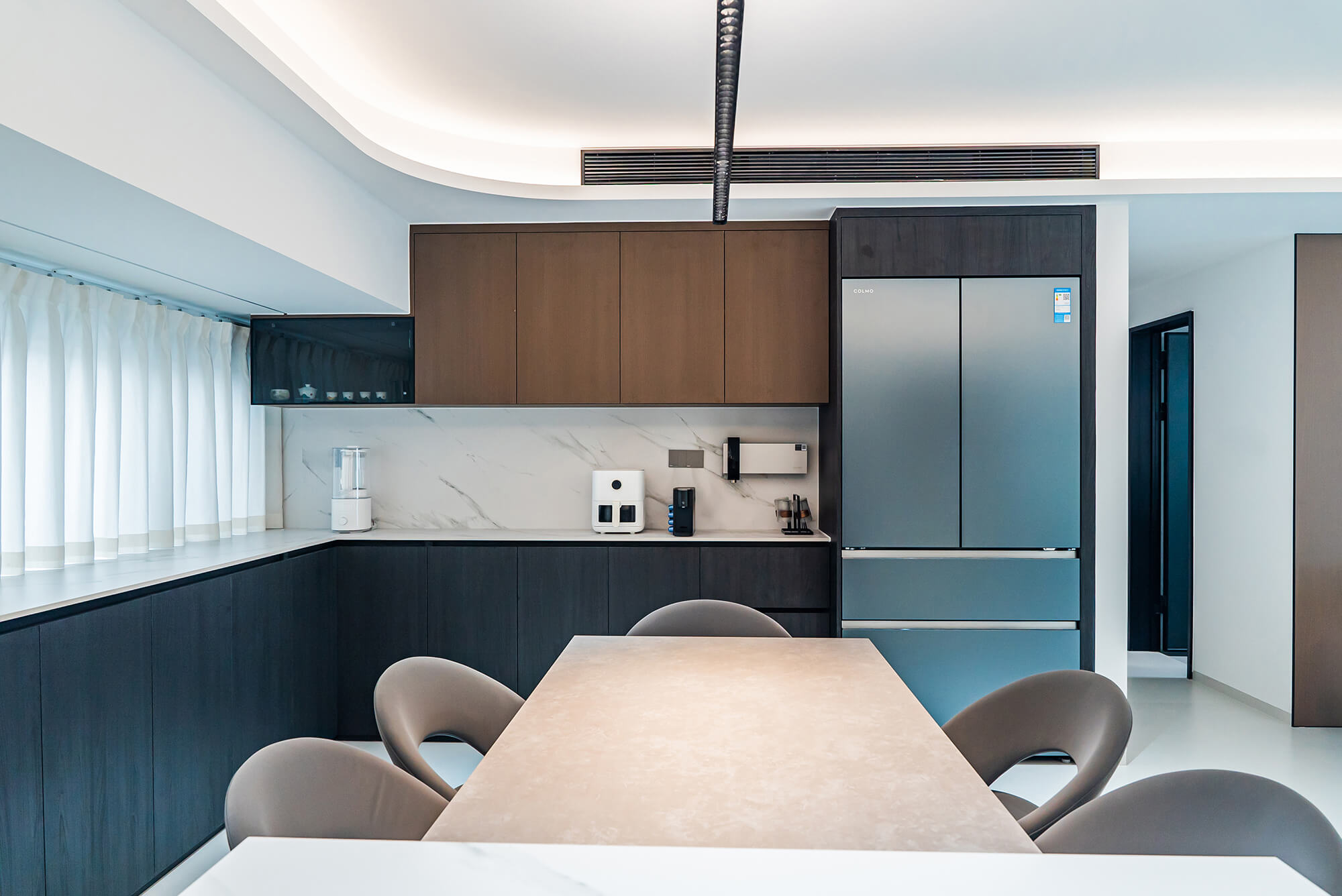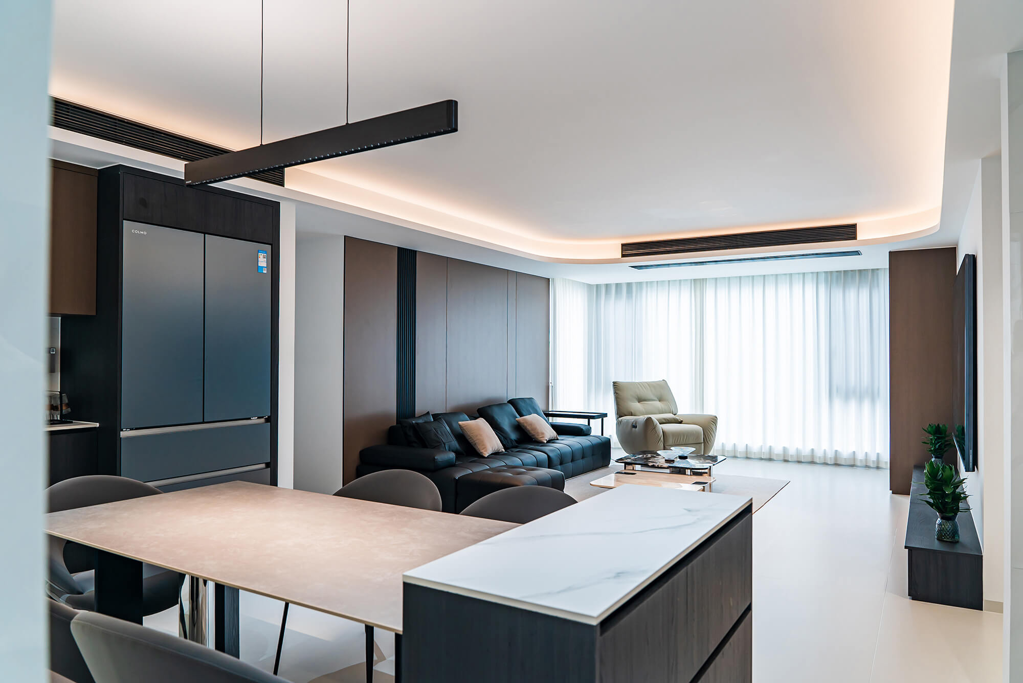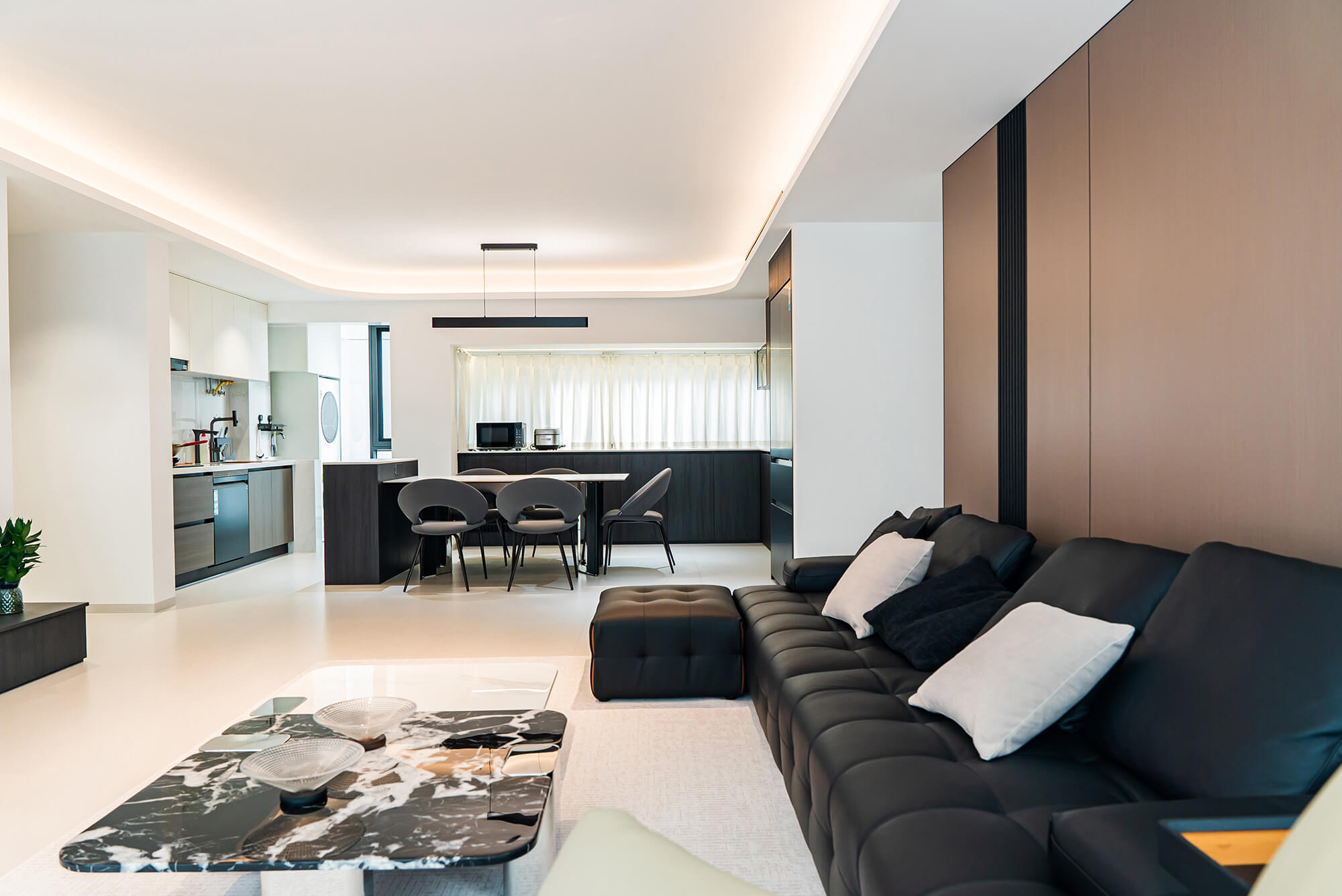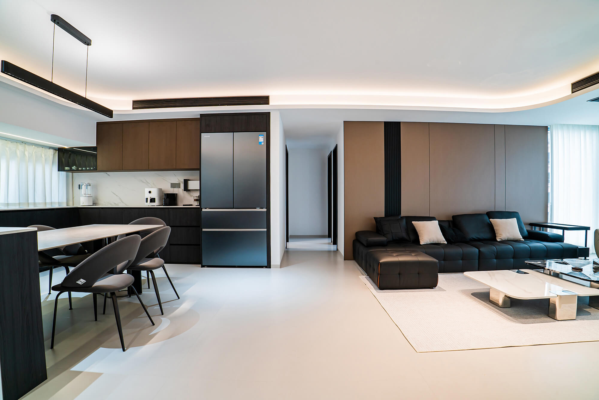 瀏覽量:222極致純粹的色彩美學(xué),以黑、白、灰三個(gè)基礎(chǔ)色構(gòu)建空間骨架,通過不同明度、材質(zhì)的層次對比(如啞光水泥、亮面巖板、磨砂金屬)豐富視覺。線條利落干脆,無多余裝飾,注重功能與結(jié)構(gòu)的統(tǒng)一性,打造冷靜、理性、富有高級質(zhì)感的極簡空間。