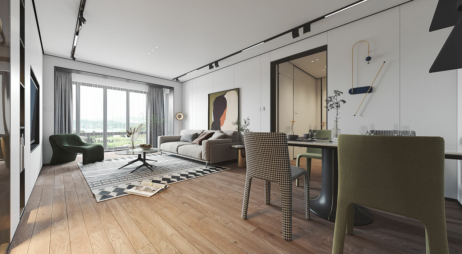 這是一對(duì)年輕夫婦的98㎡住宅,以簡(jiǎn)潔手法打造自然、質(zhì)樸典雅的空間,既藝術(shù)又有格調(diào)并帶有明顯的設(shè)計(jì)氣質(zhì)。